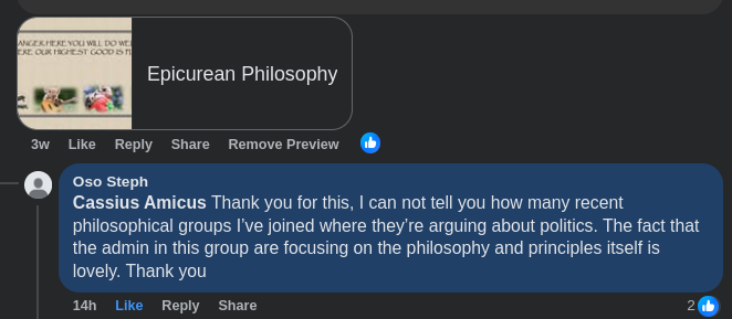 So this graphic is a step toward keeping our focus on the goal of promoting Epicurean philosophy.