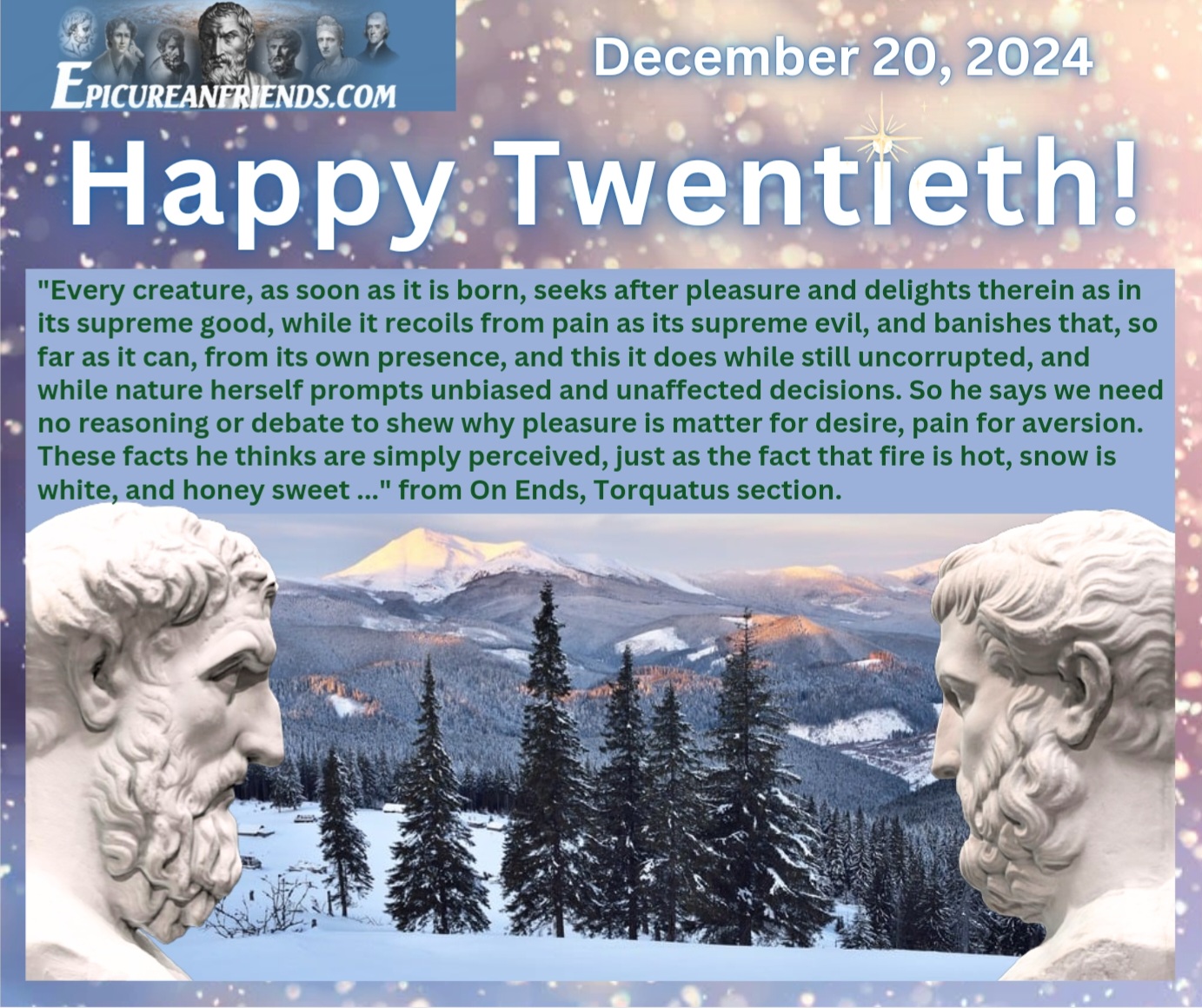 EpicureanFriends is a community of real people dedicated to the study and promotion of Classical Epicurean Philosophy. We offer what no encyclopedia, AI chatbot, textbook, or general philosophy forum can provide — genuine teamwork among people committed to rediscovering and restoring the actual teachings of Epicurus, unadulterated by Stoicism, Skepticism, Supernatural Religion, Humanism, or other incompatible philosophies.