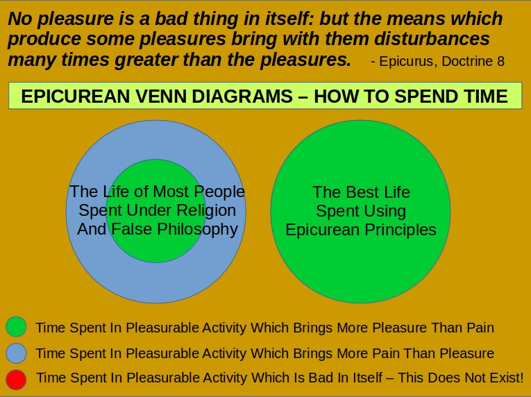 **Visualizing Principal Doctrine 8** "No pleasure is a bad thing in itself: but the means which produce some pleasures bring with them disturbances many times greater than the pleasures."