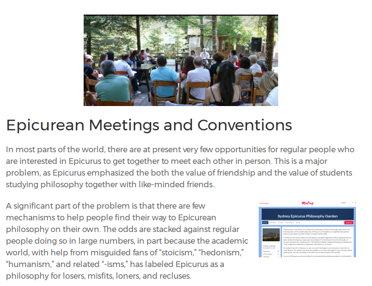EpicureanFriends is a community of real people dedicated to the study and promotion of Classical Epicurean Philosophy. We offer what no encyclopedia, AI chatbot, textbook, or general philosophy forum can provide — genuine teamwork among people committed to rediscovering and restoring the actual teachings of Epicurus, unadulterated by Stoicism, Skepticism, Supernatural Religion, Humanism, or other incompatible philosophies.