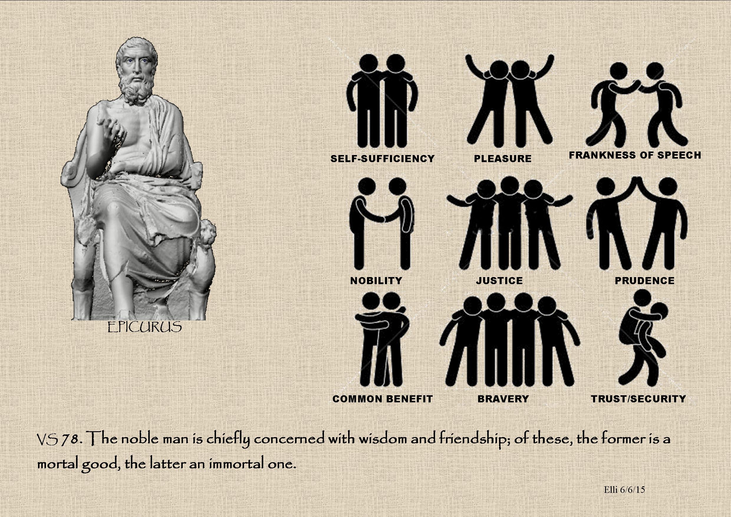 Yes, Cassius Amicus may not speak or write in Hellenika. He may not enjoy drinking ouzo, and may not know how to dance syrtaki. He also may not read to us his lectures enjoying the acclamations of applause. He may have not walked yet on this soil on which our teacher, Epicurus, walked. Our friend Cassius may have no relatives here and he is not meeting any of us in person. However, he feels that he has many friends in Hellas. Yes, he feels and expresses this with his words and his actions, as he knows what Philodemus has said: “to be saved by one another”. [vi]