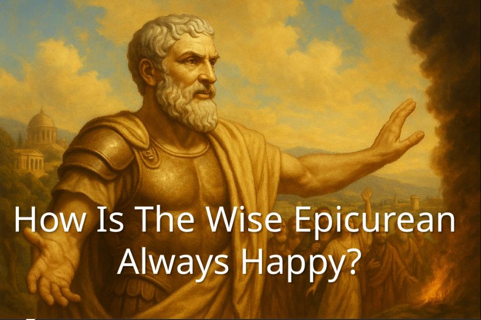 Equipped in this way, the wise Epicurean is always happy, because he knows that there is no moment when the pleasures he experiences do not outweigh his pains. When the end of his life finally comes, the wise Epicurean can face death and say: