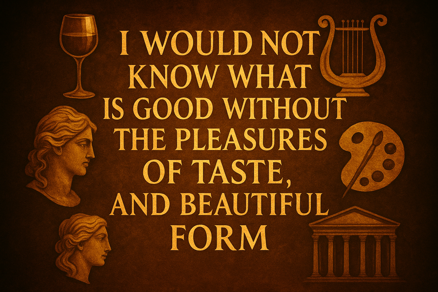 One of Epicurus' most famous sayings was that he would not know what good is without the pleasures of taste, of sex, of sound, and the pleasures of beautiful form. Epicurus also spoke often about the joy and delight that we obtain through friendship, philosophy, and the study of nature. These too come within the meaning of the word pleasure. We can therefore be sure that Epicurus endorsed the same kinds of activities that we normally think of as pleasure. But calling these activities pleasure does not mean that Epicurus was a party animal.