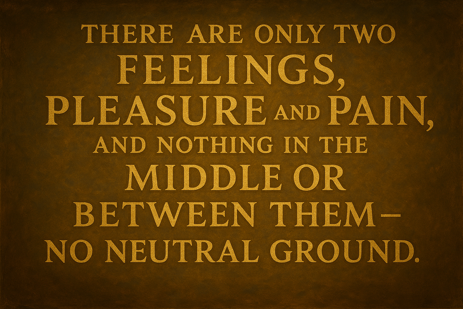 Epicurus pointed out that we experience as pleasure everything in life that we consider to be desirable. There are many different types of mental and physical pleasures and pains. Everything that we feel to be desirable we call pleasure. Everything we feel to be undesirable we call pain. In the end, all feelings resolve down into pleasure or pain. Whenever there are only two possibilities, the absence of one means the other is present. That's exactly what Epicurus said about pleasure and pain. Pleasure and pain in any part of the body or mind are mutually exclusive. Wherever pleasure is present, that part of the mind or body is not feeling pain. The phrase absence of pain therefore means nothing more or less than the word pleasure itself.