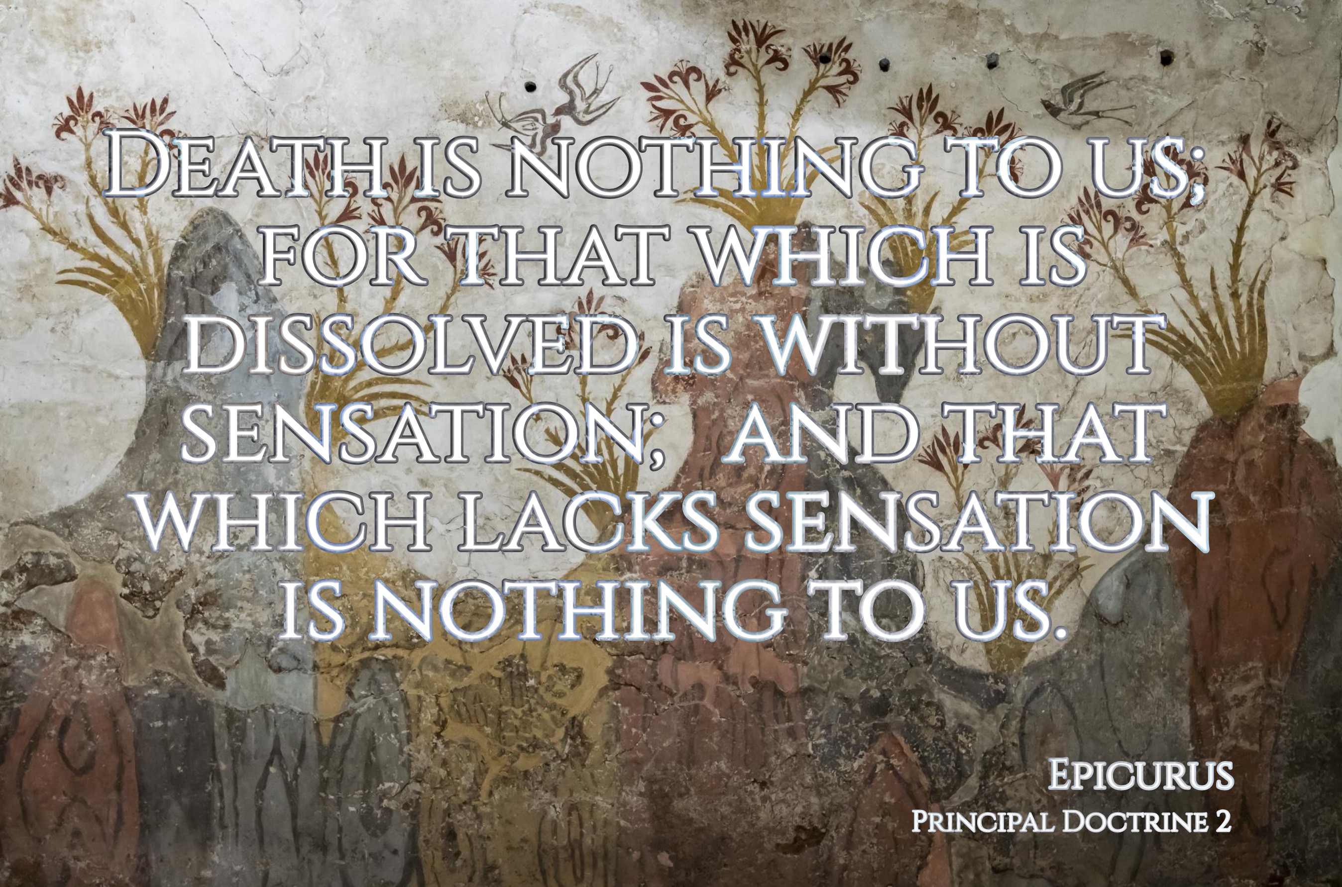 "Death is nothing to us; for that which is dissolved is without sensation; and that which lacks sensation is nothing to us." (Epicurus, Principal Doctrine 2)