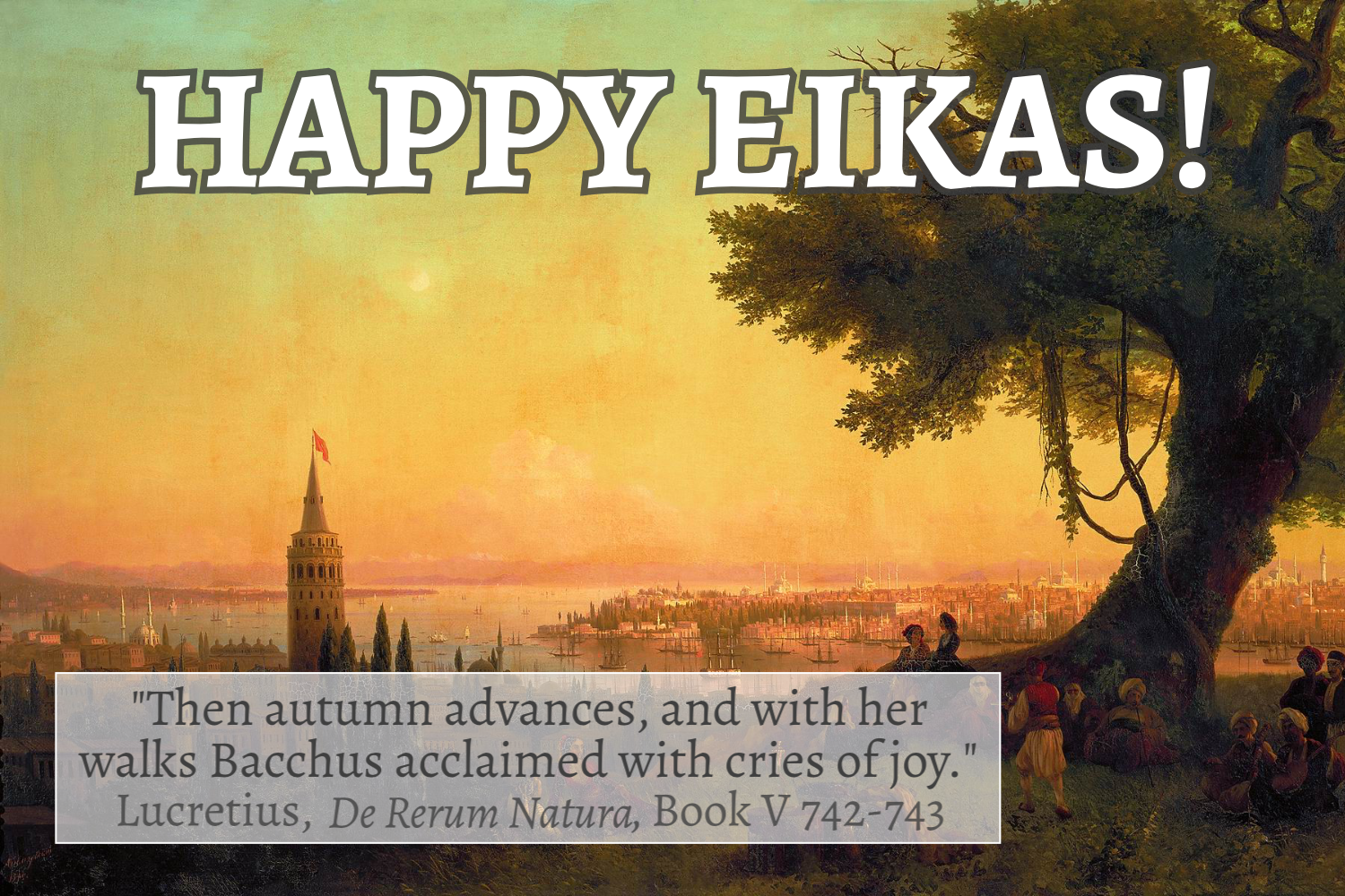 "Next in the procession comes the parching heat of summer, accompanied by dusty Ceres and blasts of etesian winds. Then autumn advances, and with her walks Bacchus acclaimed with cries of joy." (Lucretius, De Rerum Natura, Book V 741-743)