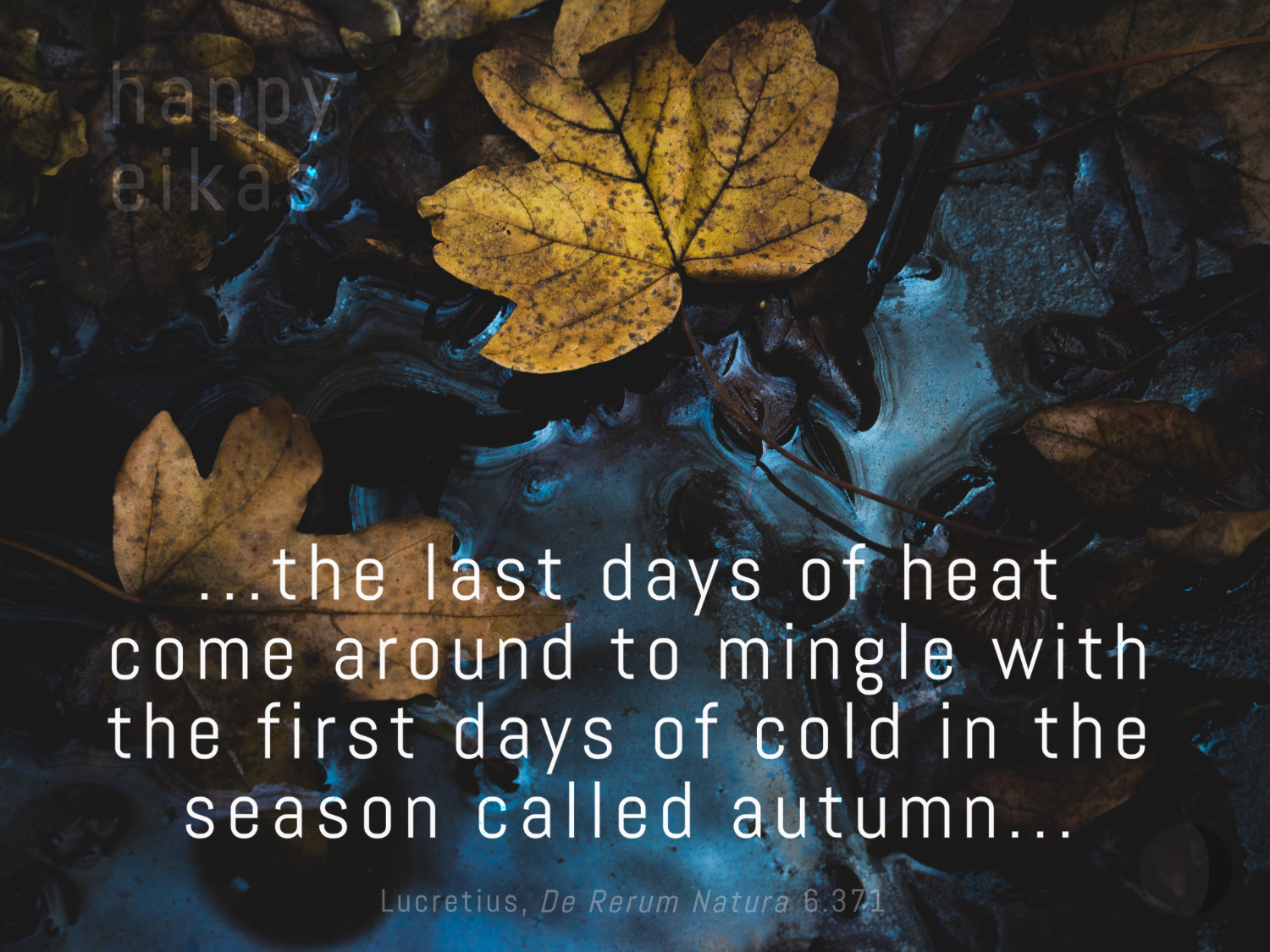 "And when the last days of heat come around to mingle with the first days of cold in the season called autumn, then too there is a conflict between summer and biting winter." (Lucretius, De Rerum Natura 7.371-372)