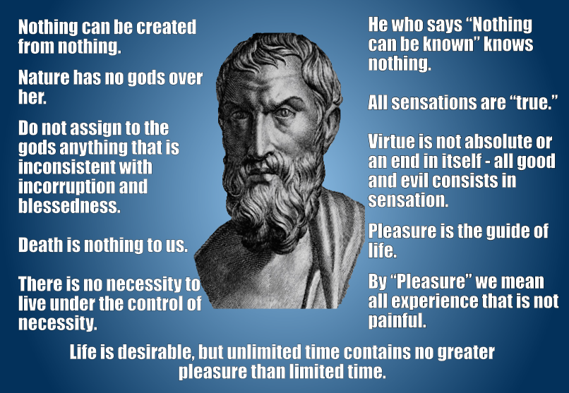 The EpicureanFriends forum works to ensure that the activities of the forum are consistent with the ancient Epicurean school by emphasizing the following points. Participants are not required to agree with all of these, but we do require that the spirit of the philosophy as presented here be respected in all public posting on the forum.