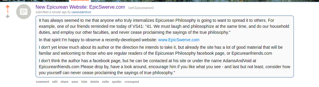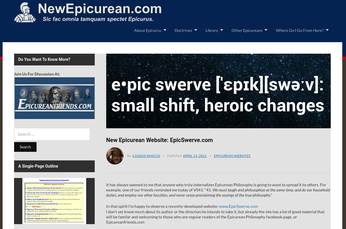 Please understand that the leaders of this forum are well aware that many fans of Epicurus may have sincerely-held views of what Epicurus taught that are incompatible with the purposes and standards of this forum. This forum is dedicated exclusively to the study and support of people who are committed to classical Epicurean views. As a result, this forum is not for people who seek to mix and match some Epicurean views with positions that are inherently inconsistent with the core teachings of Epicurus.