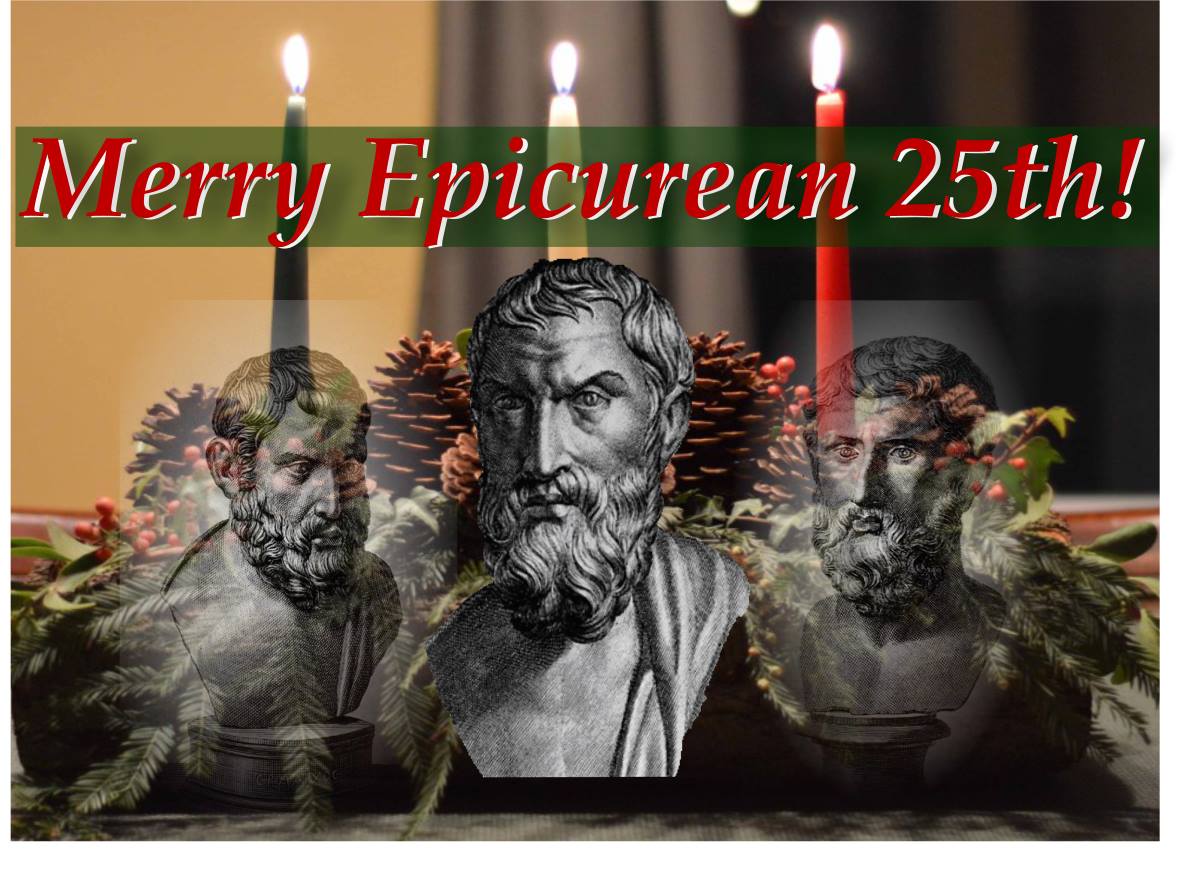 The 25th of December can be a very stressful time of the year, especially for those who find themselves spending it largely or completely alone. Most of us have been raised in cultures with impossible mystical expectations for this day and time of year, and it can be depressing to come to the realization that the truth is far different. This year I have the time to devote to a new project: I would like to invite anyone who is spending the holiday apart from friends and family to make a special effort to drop by the Epicurean Philosophy Group. I will plan to set up a special place online and devote as much of the holiday as possible to chatting with whoever drops by, and I invite all our friends who have time to do the same. If you too are largely or partly on your own for the holiday, please consider making a special effort to drop by.