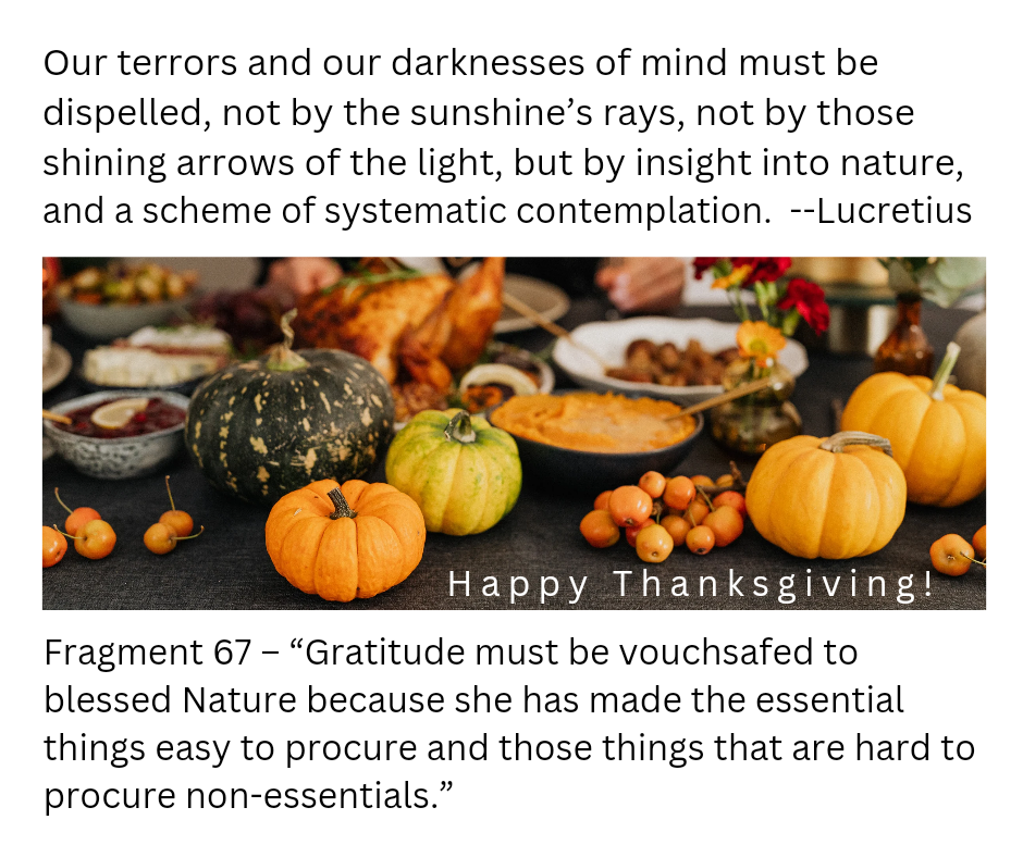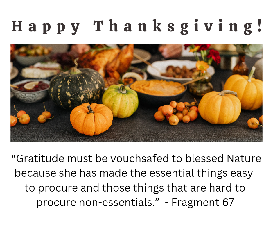 I placed a short note on the front page Announcements but when I went to add a graphic here (and at Facebook) as to "Happy Thanksging" featuring the "Give Thanks to Nature" quote I could not find one. If any of our meme artists could generate one or more and label them with "Thanks" and / or "Thanksgiving" that would be appreciated. (Of course as I write that i am probably overlooking some existing ones, so apologies if they are there already, and if anyone wants to link one here we can tag them anew if they aren't already tagged.)