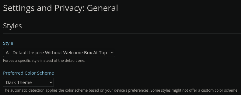 until then I'll stick to "Inspire Light Garden" with Dark Reader.Both screenshots taken with Dark Reader enabled. Upper: Default theme without welcome box. Lower: "Inspire Light Garden".