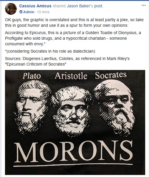 That violates clear Epicurean doctrine and shows the writer is off base. An Epicurean keeps his eye on the ball, which is living pleasurably. Focusing on the technique, rather than on the goal, is a sure way to go off base, because some circumstances require one technique, and other circumstances require other techniques, with the goal always being that of achieving pleasure and avoiding pain. -