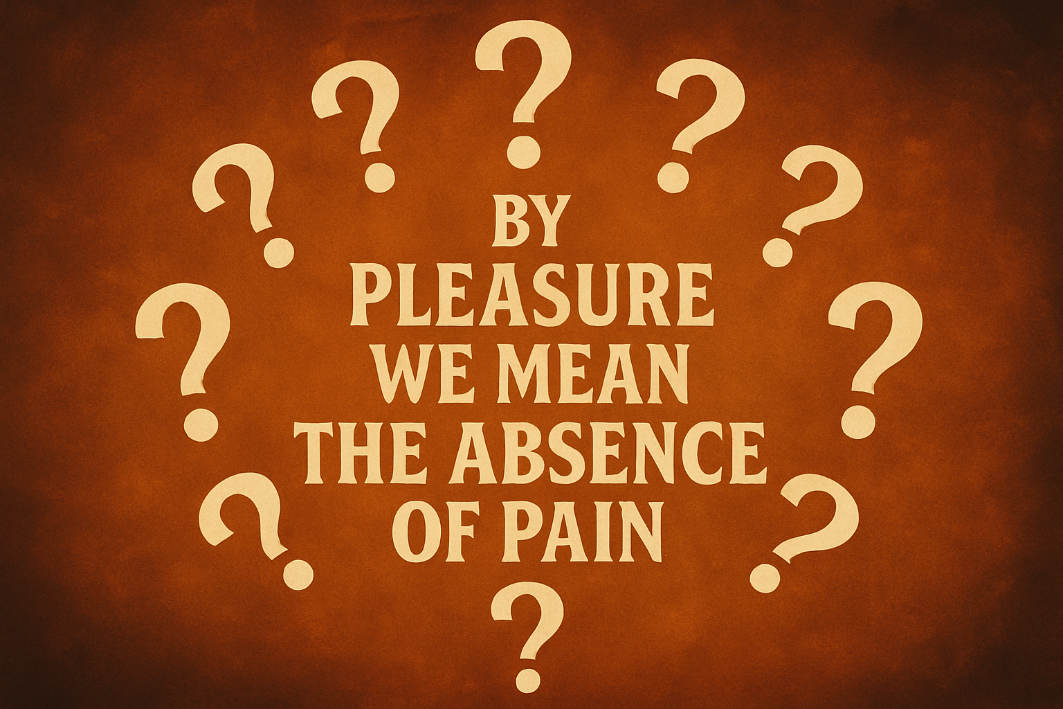 Everything we feel is either pleasurable or painful. If we are aware of our condition at all, what we are feeling is pleasure or pain. There is no middle ground and no third alternative. Since pleasures are desirable and pains are not, our goal should be to fill as much of our life as possible with pleasures. From this point of view it is easy to understand what Epicurus meant by absence of pain. Whenever we remove any pain of mind or body, whatever replaces it is pleasure. For Epicurus the word pleasure never changes its meaning. Pleasure always refers to something that we find to be desirable. The specific mental or bodily activity that we find to be pleasurable will depend entirely on our personal circumstances and feelings. Whether we call the goal of life pleasure or absence of pain is of no consequence.