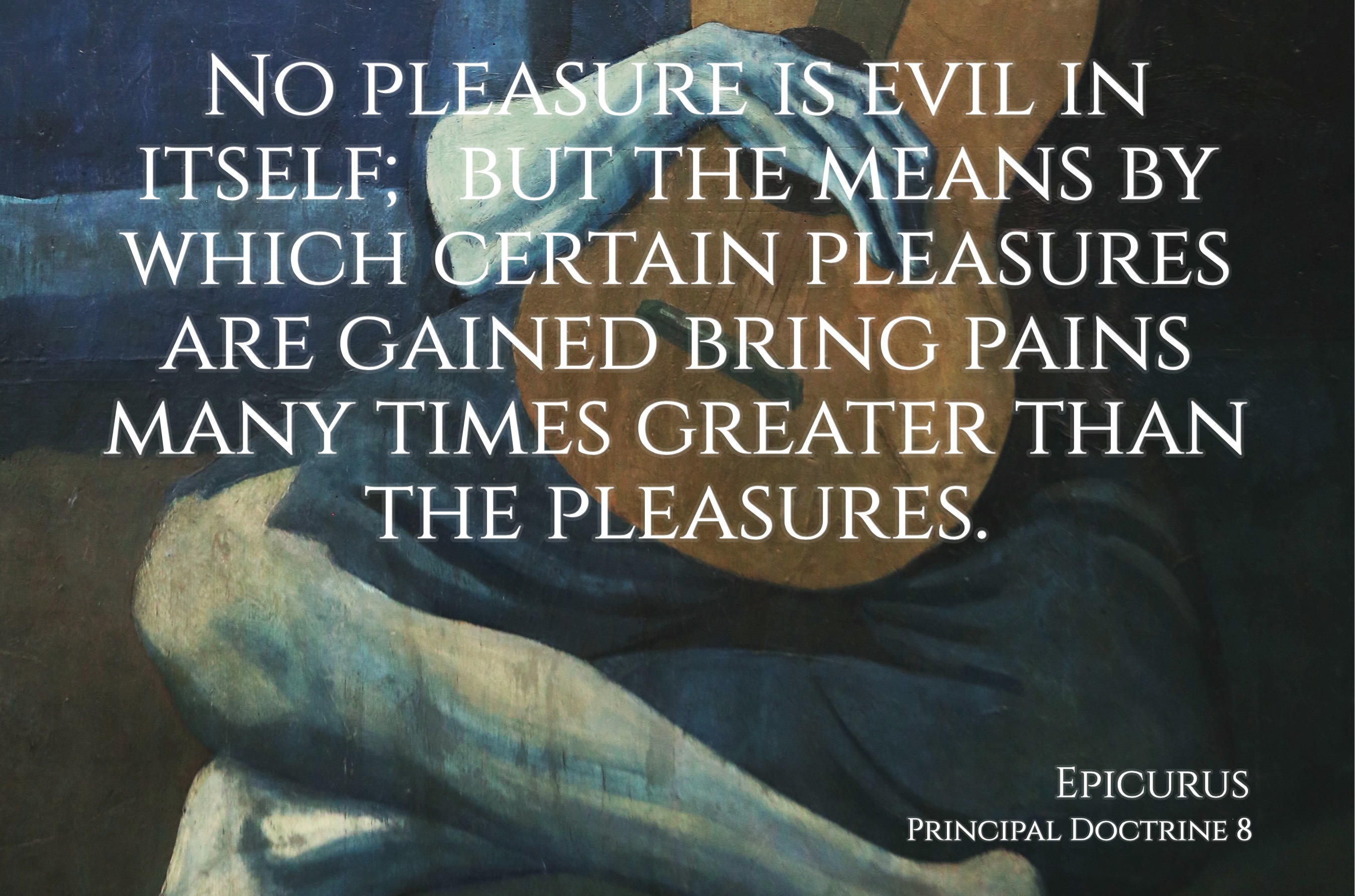 “No pleasure is evil it itself; but the means by which certain pleasures are gained bring pains many times greater than the pleasures.” (Epicurus, Principal Doctrine 8)