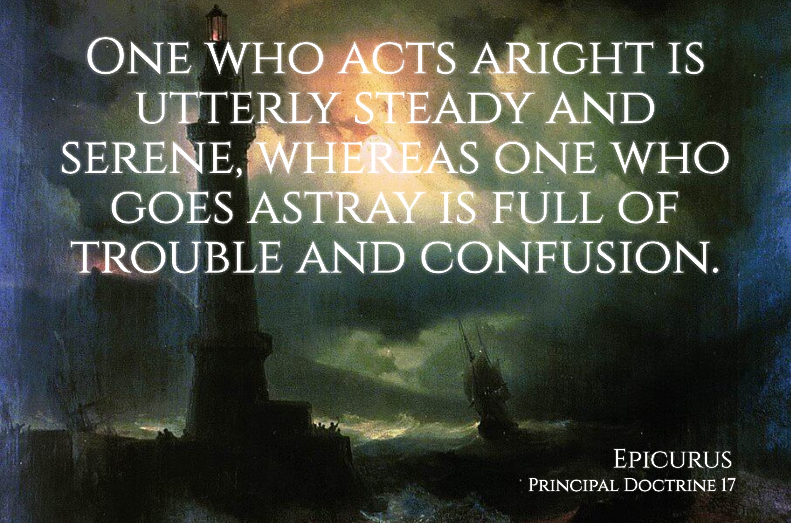 “One who acts aright is utterly steady and serene, whereas one who goes astray is full of trouble and confusion.” (Epicurus, Principal Doctrine 17)