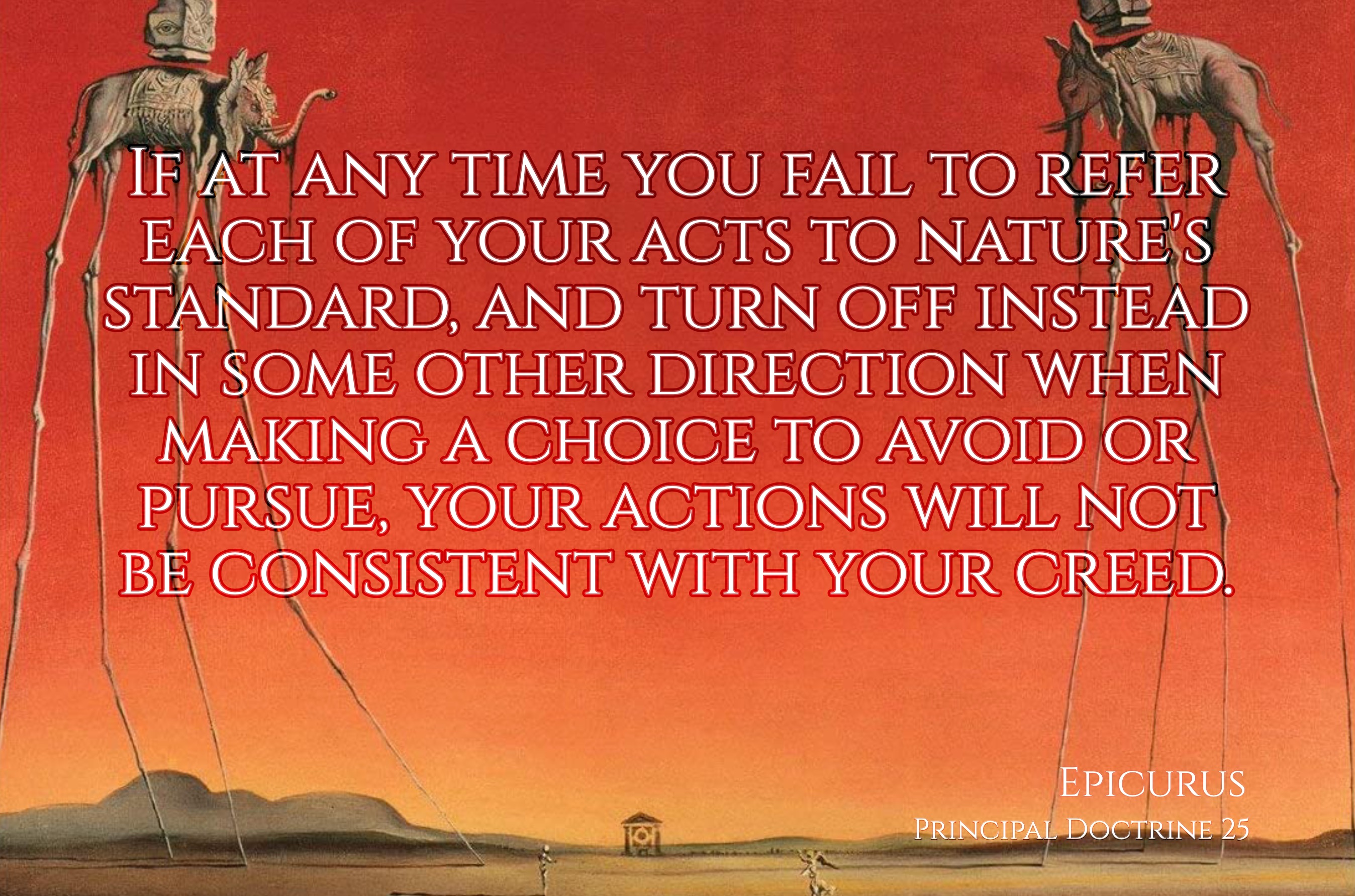 “If at any time you fail to refer each of your acts to nature's standard, and turn off instead in some other direction when making a choice to avoid or pursue, your actions will not be consistent with your creed.” (Epicurus, Principal Doctrine 25)