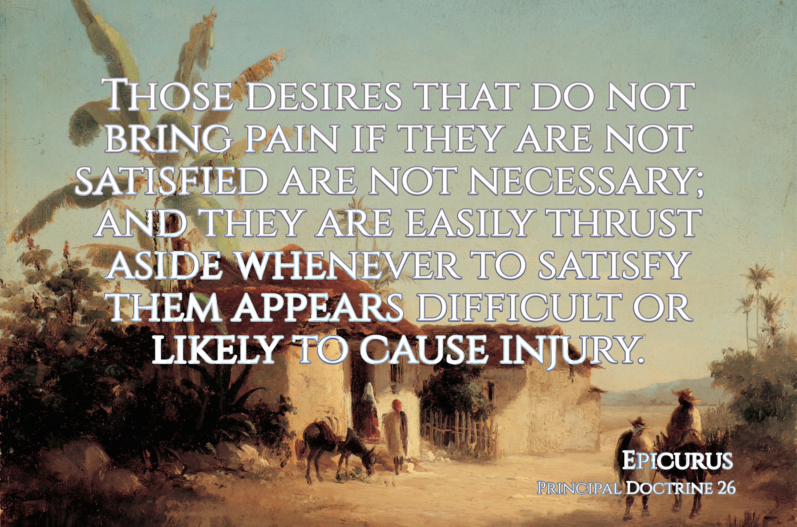 “Those desires that do not bring pain if they are not satisfied are not necessary; and they are easily thrust aside whenever to satisfy them appears difficult or likely to cause injury.” (Epicurus, Principal Doctrine 26)