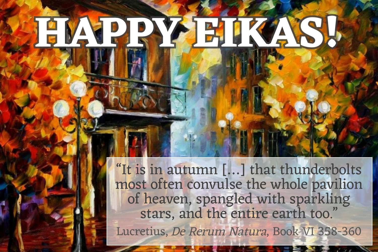 "It is in autumn, and also when flowery springtime unfolds, that thunderbolts most often convulse the whole pavilion of heaven, spangled with sparkling stars, and the entire earth too. In the cold of winter there is a lack of fire, while in the heat of summer winds fail and the clouds are not sufficiently dense" (Lucretius, De Rerum Natura, Book VI 358-362)