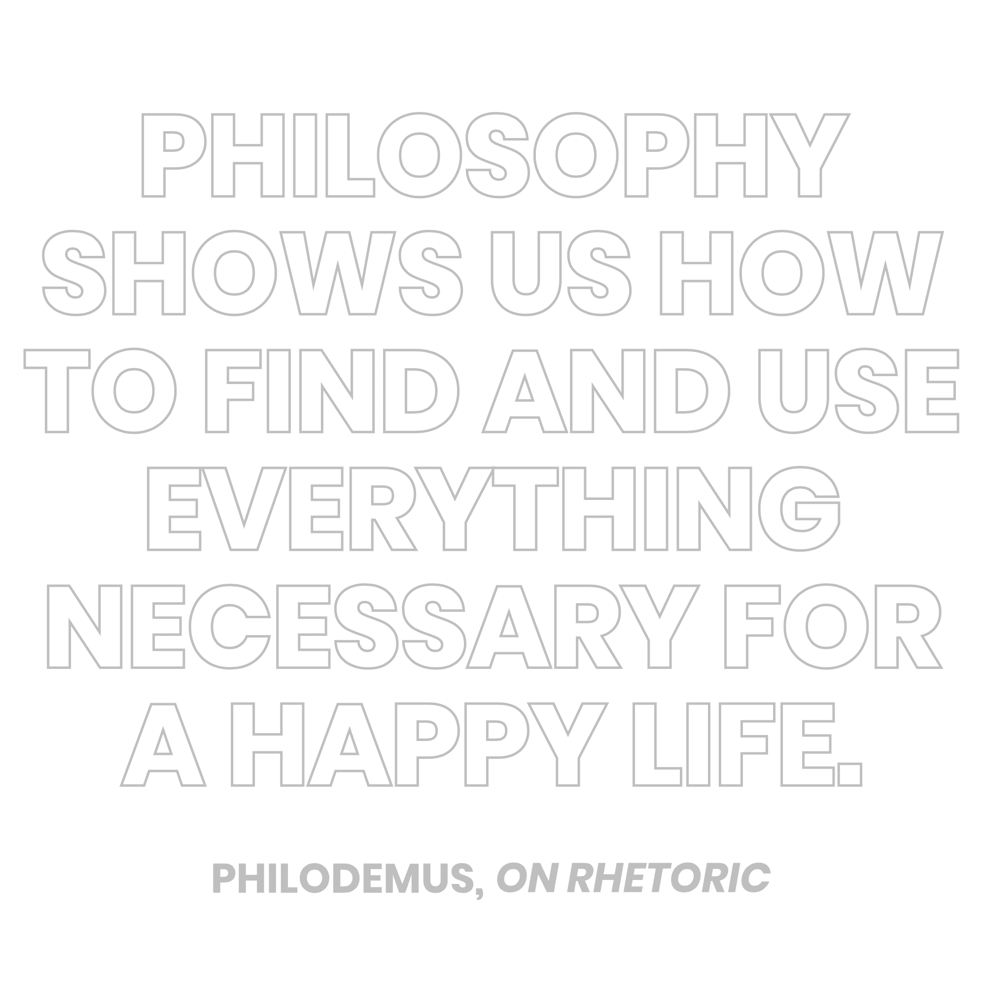 “lf for these reasons persuasion was reasonably considered a good by them, she would have been deified by philosophy. The fact that through it no little harm is done is not true of philosophical persuasion, but of rhetorical which Pisistratus used; wherefore it does not belong to the category of the greatest goods as they perversely say,’ nor to the special categories of power and wealth. If one does not use these well, he would receive much harm. Philosophy shows us how to find and use everything necessary for a happy life.“ (Philodemus, On Rhetoric, Book V)